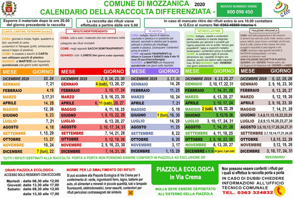 Il nuovo calendario per la raccolta rifiuti (anno 2021) è disponibile in allegato