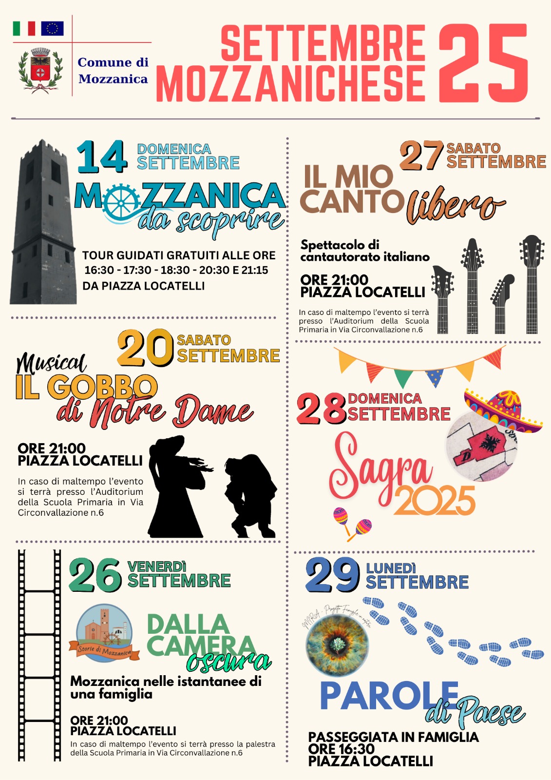 Un Settembre Mozzanichese ricco di eventi che culminerà con la Sagra, domenica 28 settembre 2025.