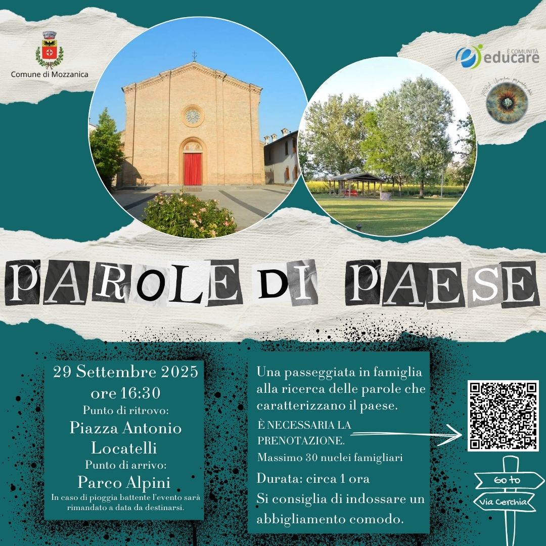Lunedì 29 settembre ore 16:30 da Piazza Locatelli “Parole di paese” con Mira – Consorzio Educare è Comunità. Una passeggiata in famiglia alla ricerca delle parole che caratterizzano Mozzanica. Gratuito ma necessaria la prenotazione.