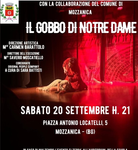 Sabato 20 settembre ore 21:00 musical “Il Gobbo di Notre Dame” nella suggestiva cornice di piazza Locatelli, sullo sfondo la Chiesa Santo Stefano che per l’occasione diventa la Cattedrale di Notre Dame e la Torre il campanile.